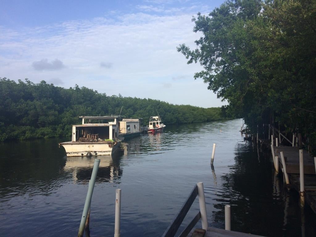 To the south, a rustic and unregulated fishing village flourished along Card Sound Road. Known informally as “Downtown Card Sound,” this community of shacks, houseboats, docks, and trailers was home to commercial fishers and locals living off the land and water. With no sewer, trash service, or regulation, this community became both a cultural landmark and a source of environmental degradation. Fuel and waste leached into surrounding mangroves, vessels were abandoned in creeks, and the remnants of decades of informal use began to accumulate. At its peak, more than a hundred people lived in the village. By the 1990s, most structures were abandoned or collapsed, and the shoreline bore the scars of long-term neglect.