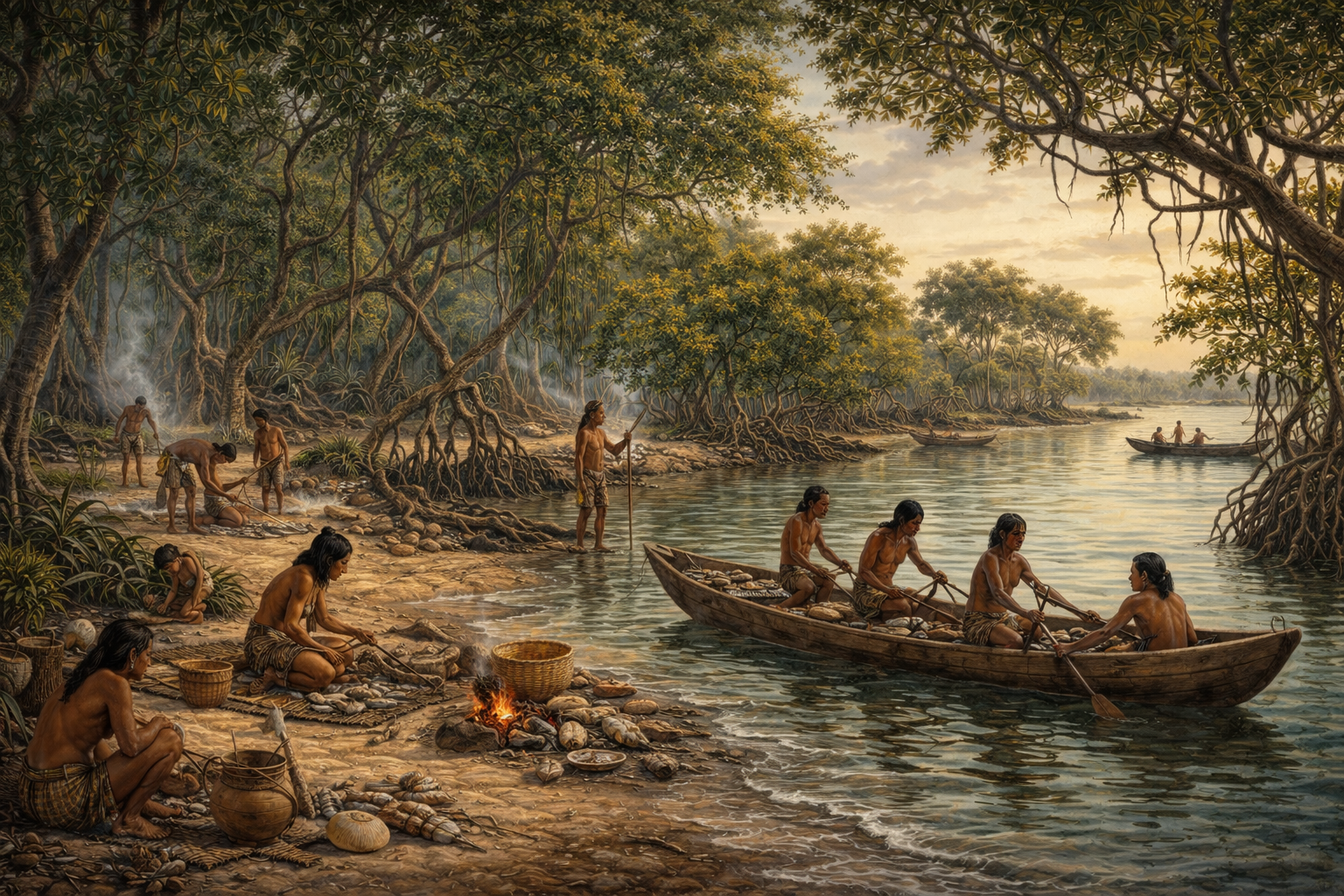 Long before Card Sound became a place of restoration, it was home to the Tequesta, whose ancestral territory encompassed the Biscayne Bay–Card Sound region for thousands of years prior to European contact. They understood these waters with the intimacy of generations. They moved through the mangroves and shallow bays with purpose, reading the tides and seasons like others read books. Archaeological evidence from nearby coastal sites shows long-term reliance on fisheries, shellfish, and mangrove-associated resources. The fish were abundant. The water was clear. Life moved in rhythm with the rhythm of the sea.